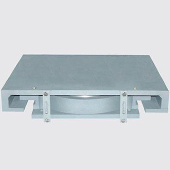 雙向(多向)活動支座和單向活動支座由上座板(包括頂板和不銹鋼滑板)、聚四氟乙烯滑板、中間鋼板、密封圈、橡膠板、底盆、地腳螺栓和防塵罩等組成。單向活動支座沿活動方向還設(shè)有導(dǎo)向擋塊。